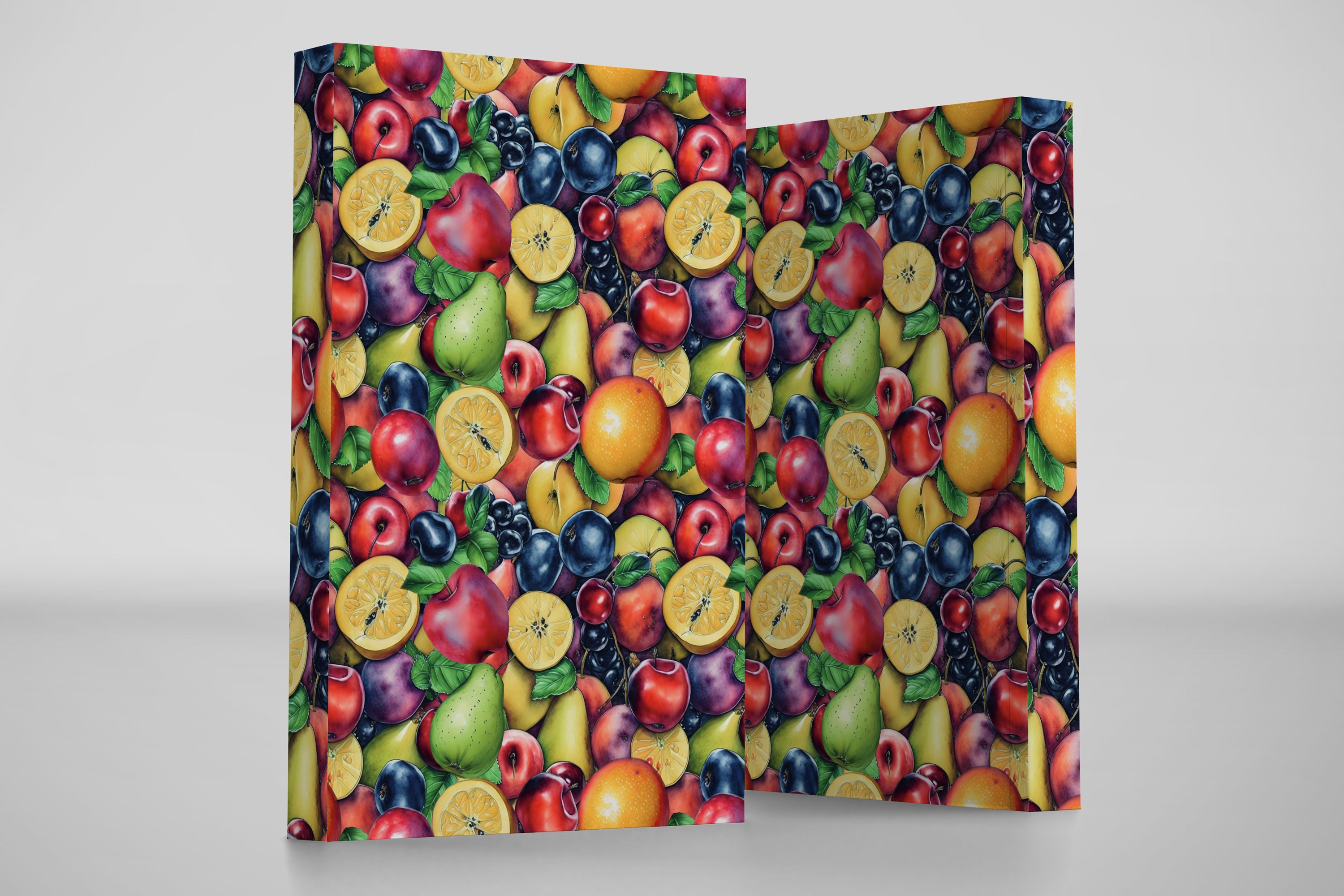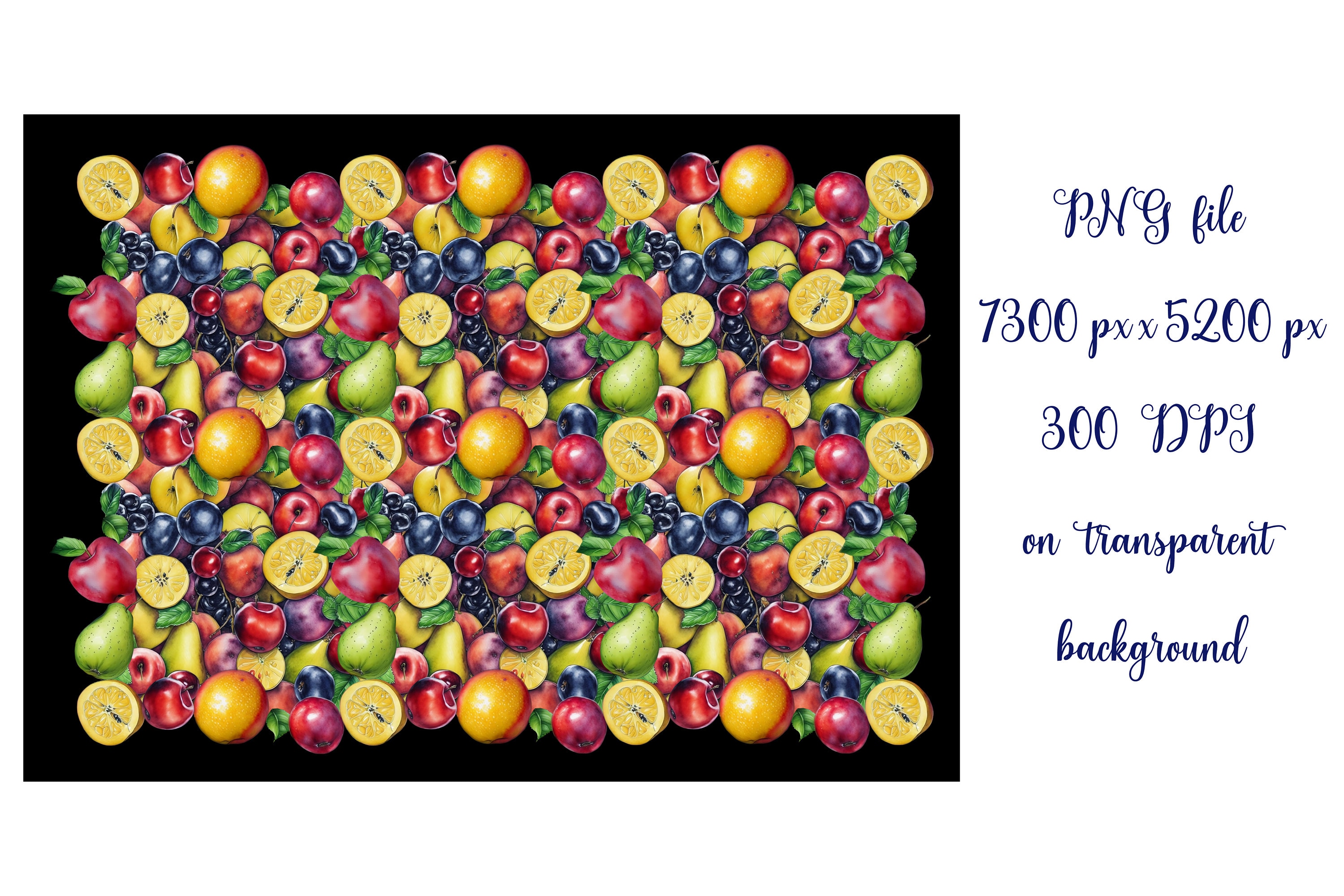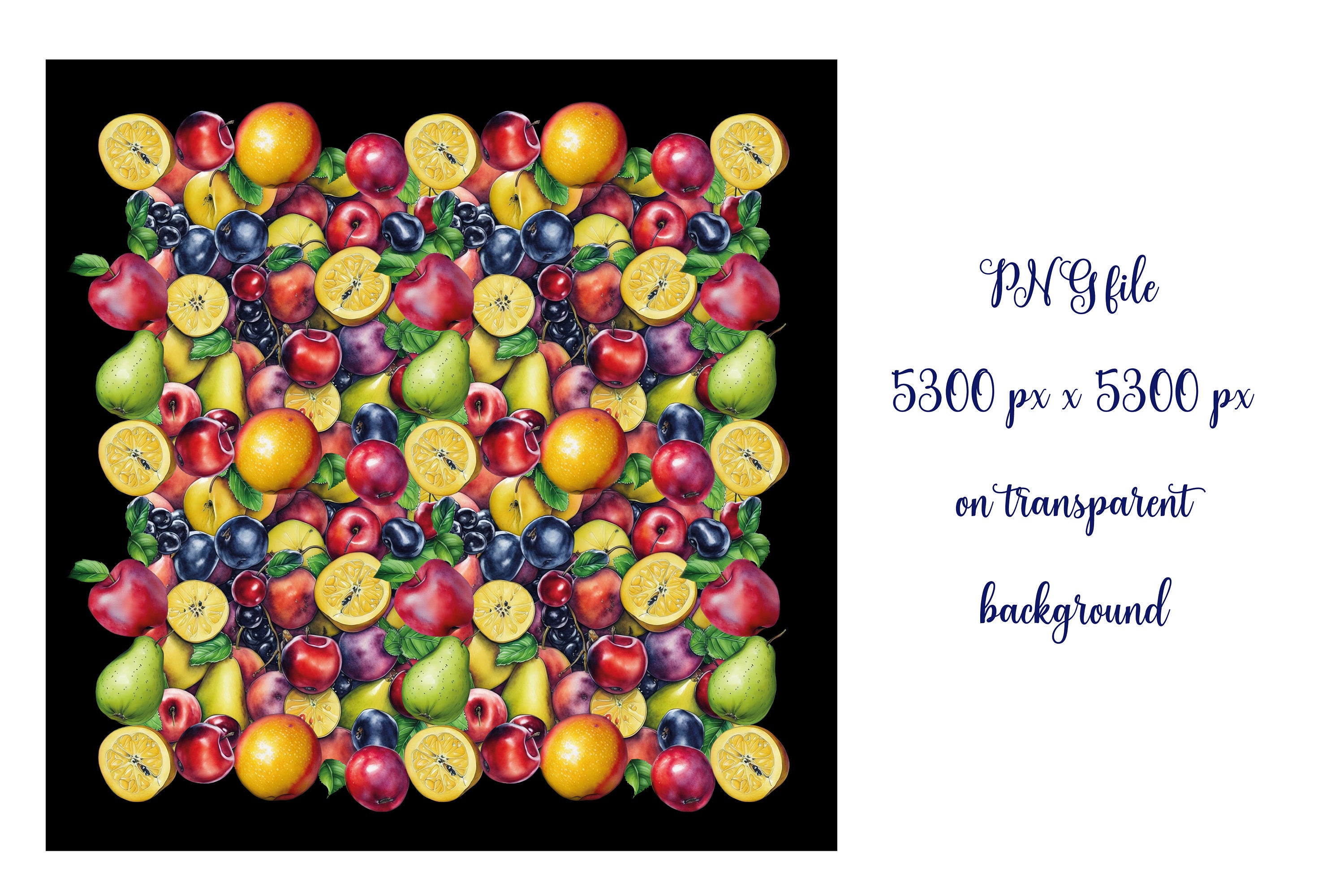 Fruity watercolor seamless pattern is a digital product ideal for creating printed products: party invitations, planner stickers, notebooks, wallpapers, stationery, blog designs, fabrics and textiles, digital scrapbooking, packaging, greeting cards and other projects.